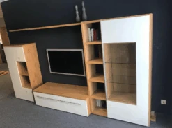 Wohnwand Now Touch 9801141 Lack Supermatt Reinweiß Akzent Samteiche Grau