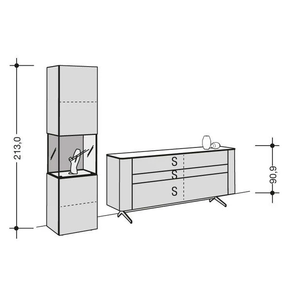 Hülsta Gentis Wohn-Kombi 7 – Akzent Naturstamm Inkl. LED-Beleuchtung Vitrine