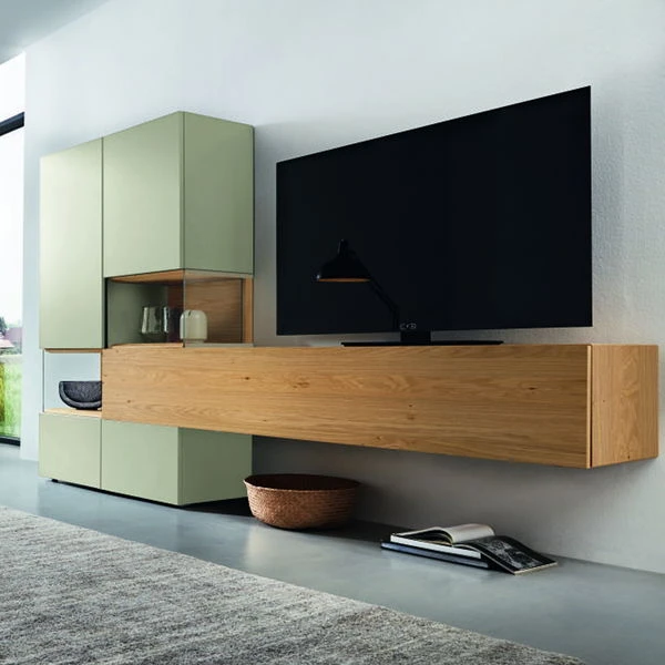 hülsta Neo Wohnwand Vitrine mit Hängeelement – Lack seidengrau