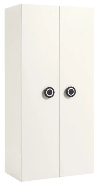 Der Kleiderschrank ist mit 2 Türen ausgestattet. Innen befinden sich 2 Einlegeböden und 1 Kleiderstange.