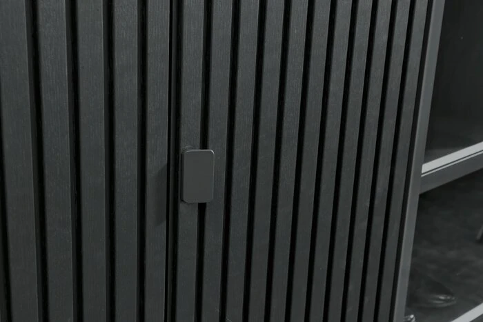 - Front aus furnierter Eiche mit Lamellen in anthrazit
