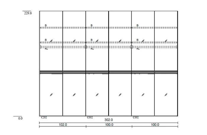- Innenausstattung: 2 Fachböden und 1 Kleiderstange je Türenelement