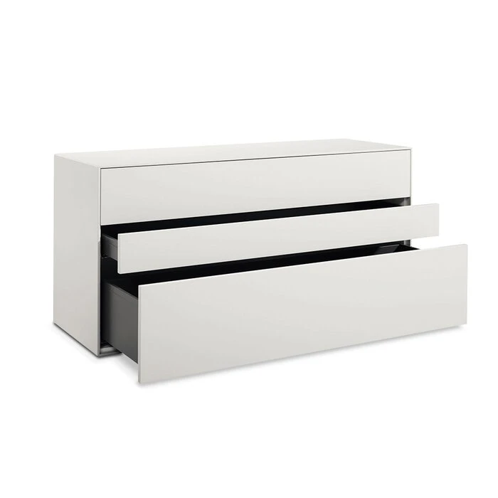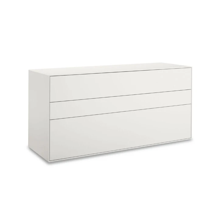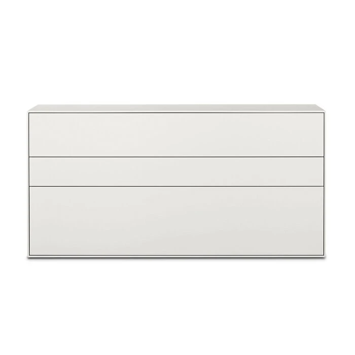 - Front und Korpus aus Spanplatte in Lack reinweiß