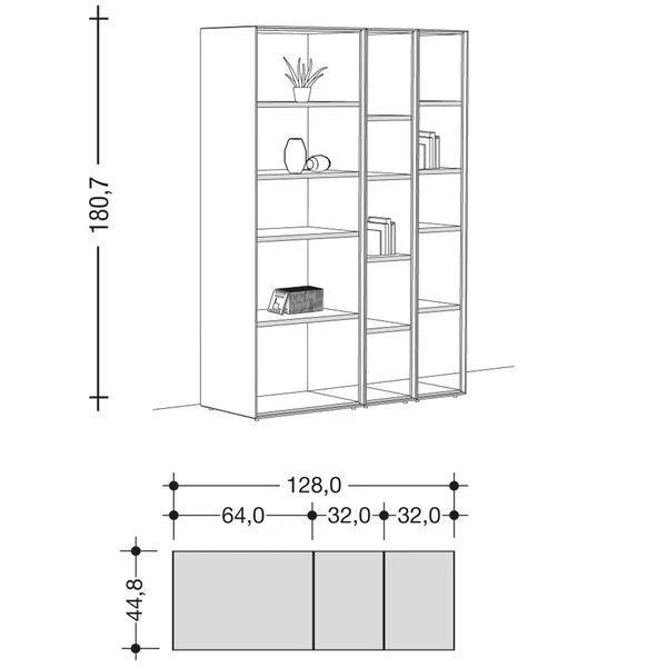 Gesamtmaß: 180,7 x 128 x 44,8 cm (H x B x T)
