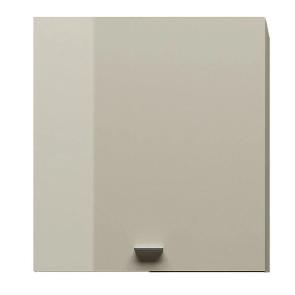 Der Korpus dieses Hängebaukasten ist in Lack-seidengrau gehalten. Die Front ist in Lack-Hochglanz-seidengrau.