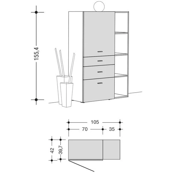 Gesamt: 155,4 x 105 x 42 cm (H x B x T)