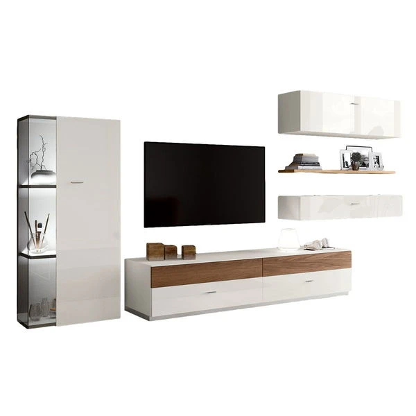 Now! No.14 By Hülsta Kombination 15 191x390x52 Kernnussbaum/Lack-weiß/Lack-Hochglanz-weiß