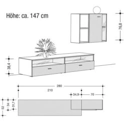 Gesamt: 70,4 x 211,3 x 52 cm (H x B x T)