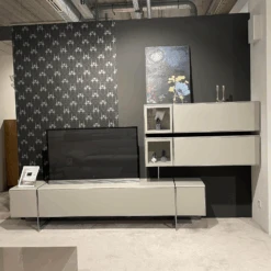 Wohnwand Fonis Lack Seidengrau Gestell Chrom Glanz Mit Beleuchtung