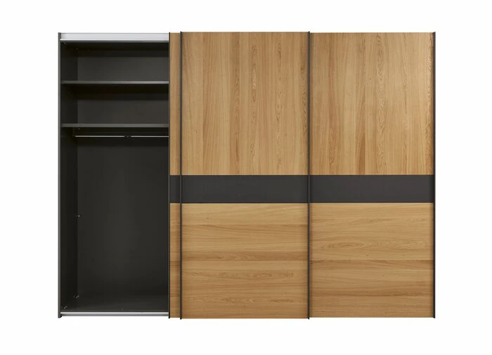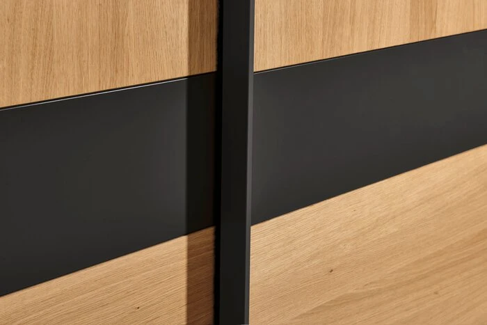 - Front aus furnierter Eiche Natur mit Bauchbinde in Lack anthrazit