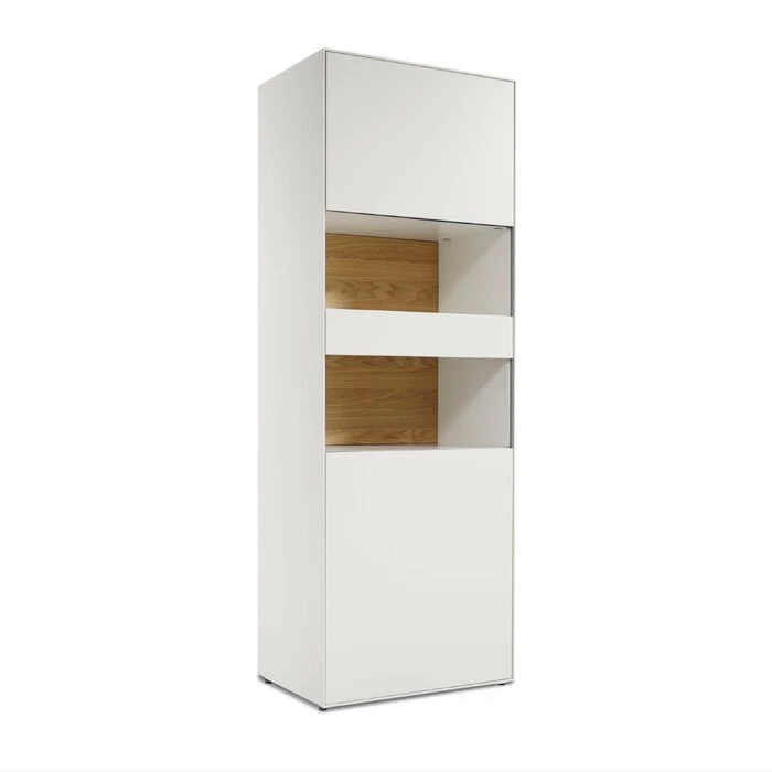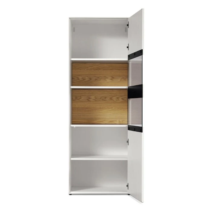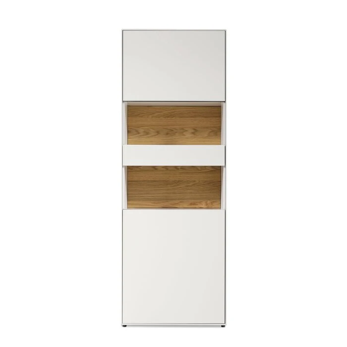 - Front und Korpus aus Spanplatte in Lack reinweiß und Rückwand in Lack reinweiß mit Klarglas